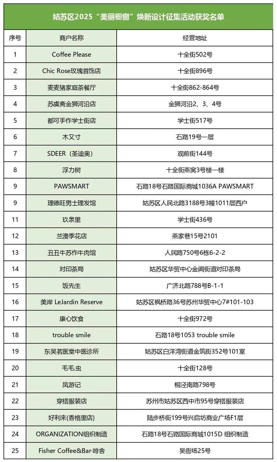 正在姑苏,最美的得意不单隐于园林深巷,也藏正在陌头巷尾一扇扇经心安插的橱窗、一块块别具匠心的店招里。日前,姑苏区2025“文雅橱窗店招”焕新计划搜集勾当评选结果正式揭晓,通过初评、汇集投票与专家评审三轮归纳评定,最终从100件入围作品中评选出25家“文雅店招” 和 25家“文雅橱窗”。